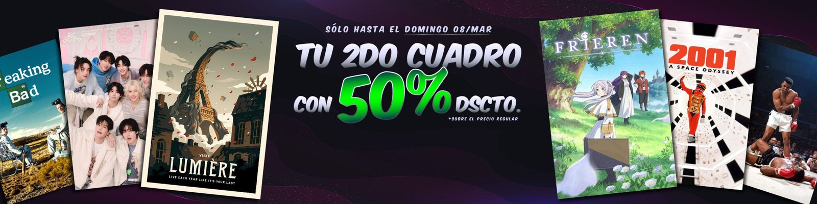Compra de forma fácil y segura en nuestra tienda online, aprovecha descuentos por temporadas, disfruta de envío gratis en compras seleccionadas y ¡renueva tu espacio con los mejores cuadros!